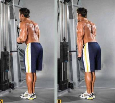 注:有些人可能會錯用三頭肌的力量下壓,導致手肘關節移動,大家訓練時可能要多注意。